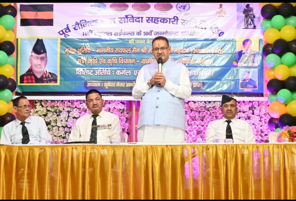 देहरादून के बालावाला स्थित वेडिंग प्वाइंट में आज 14वीं बटालियन गढ़वाल राइफल्स का 50वां स्थापना दिवस कार्यक्रम में सैनिक कल्याण मंत्री गणेश जोशी मुख्य अतिथि के रूप में शामिल हुए