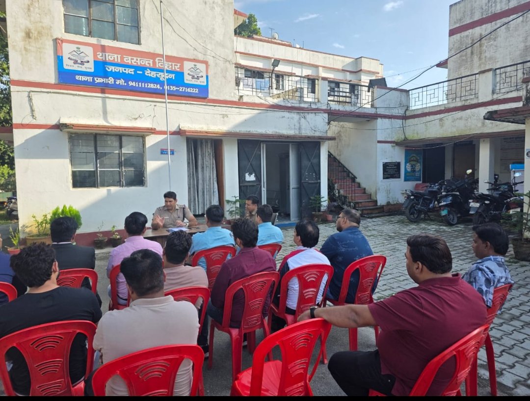 आगामी त्योहारी सीजन के दृष्टिगत वरिष्ठ पुलिस अधीक्षक देहरादून द्वारा आगामी त्योहारी सीजन के दृष्टिगत सभी अधीनस्थों को अपने-अपने क्षेत्रान्तर्गत स्थित ज्वेलरी शोरूम के प्रबंधकों/ मैनेजरों व व्यापार मडंल के पदाधिकारियों के साथ जागरूकता गोष्ठी आयोजित किये जाने हेतु निर्देशित किया गया है । जिसके अनुपालन में आज दिनाक : 07-10-25 को थानाध्यक्ष बसंत विहार द्वारा क्षेत्र में पड़ने वाले समस्त ज्वैलरी शॉप/शो रूम के मालिकों/मैनेजरो की एक गोष्ठी का आयोजन किया करते हुए सुरक्षा उपायों के सम्बंध में जागरूक किया गया।