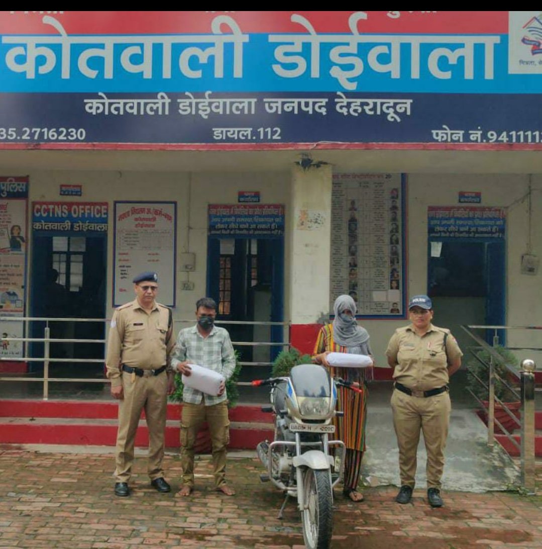 मा0 मुख्यमंत्री उत्तराखंड के *”ड्रग्स फ्री देवभूमि 2025″* के विजन को साकार करने के लिये वरिष्ठ पुलिस अधीक्षक देहरादून द्वारा सभी थाना प्रभारियों को नशा तस्करों के विरुद्ध प्रभावी कार्यवाही के निर्देश दिये गए है। उक्त निर्देशों के क्रम में डोईवाला पुलिस द्वारा चैकिंग के दौरान दिनांक 15/09/2025 को कुआंवाला, हर्रावाला के पास से 02 नशा तस्करों मौ० जावेद पुत्र मो० मुश्ताद को 02 किलो 50 ग्राम अवैध गांजे तथा पुष्पा पत्नी दिनेश को 02 किलो 10 ग्राम अवैध गांजे के साथ गिरफ्तार किया गया तथा तस्करी मे प्रयुक्त मो0सा0 सं0- UA07H-2090 को सीज कर कोतवाली डोईवाला पर दोनो अभियुक्तों के विरुद्ध NDPS ACT के तहत अभियोग पंजीकृत किया गया।
