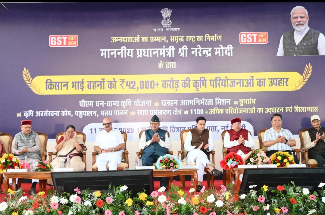 प्रधानमंत्री नरेंद्र मोदी ने राष्ट्रीय कृषि विज्ञान परिसर, पूसा (नई दिल्ली) से “पीएम धन-धान्य कृषि योजना” एवं “दलहन आत्मनिर्भरता मिशन” का शुभारंभ किया। साथ ही उन्होंने कृषि, पशुपालन, मत्स्य पालन एवं खाद्य प्रसंस्करण से जुड़ी 1100 से अधिक परियोजनाओं का उद्घाटन एवं शिलान्यास भी किया।