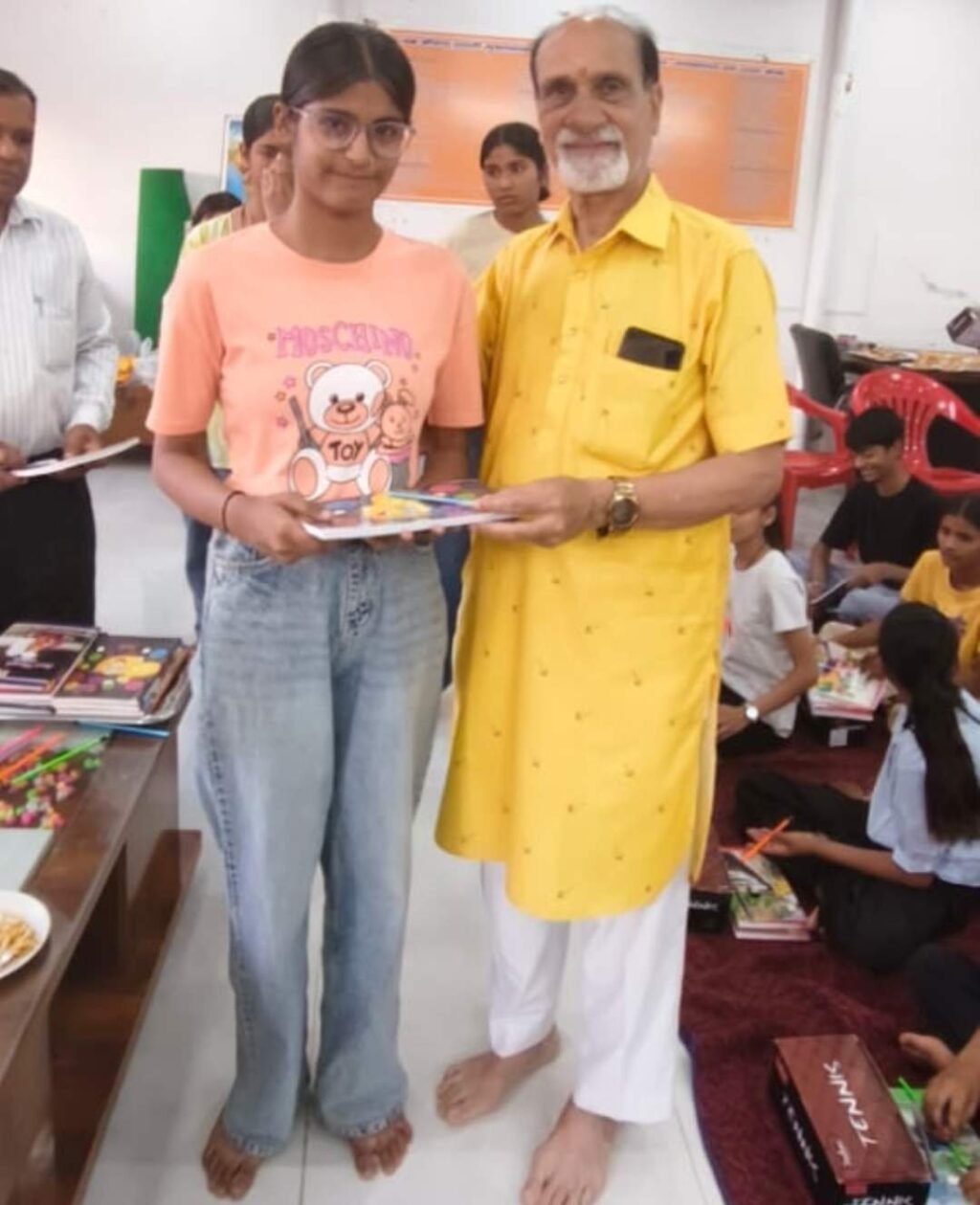 बच्चों द्वारा गाए गए मंत्र एवं गीता के श्लोक की प्रशंसा करते हुए महावीर सेवा समिति के संरक्षक श्री कीमत गुलाटी व श्री जगदीश गिरोटी ने बच्चों को धर्म परायणता की शिक्षा प्रदान करने पर केंद्र प्रभारी की भूरि भूरि प्रशंसा की। प्रेमनगर व्यापार मंडल (रजि.) के अध्यक्ष श्री भूषण भाटिया ने कहा कि अपने समाज व राष्ट्र को सशक्त करने हेतु पूरे देश में इसी प्रकार के संस्कार केंद्रों की आवश्यकता है। उत्तम शिक्षा व संस्कार प्रदान करने हेतु इस केंद्र के शिक्षकों और केंद्र प्रभारी का आभार व्यक्त किया गया। बच्चों को दोनों संस्थाओं की ओर से जूते व लेखन सामग्री वितरित की गई।