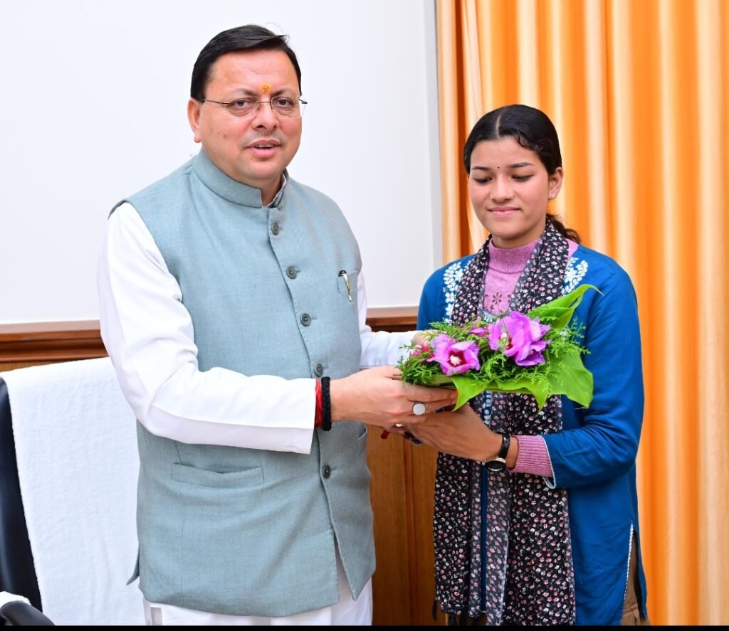 मुख्यमंत्री श्री पुष्कर सिंह धामी से बुधवार को गैरसैंण (भराड़ीसैंण) में मुख्यमंत्री आदर्श ग्राम सारकोट की ग्राम प्रधान प्रियंका नेगी ने भेंट की।