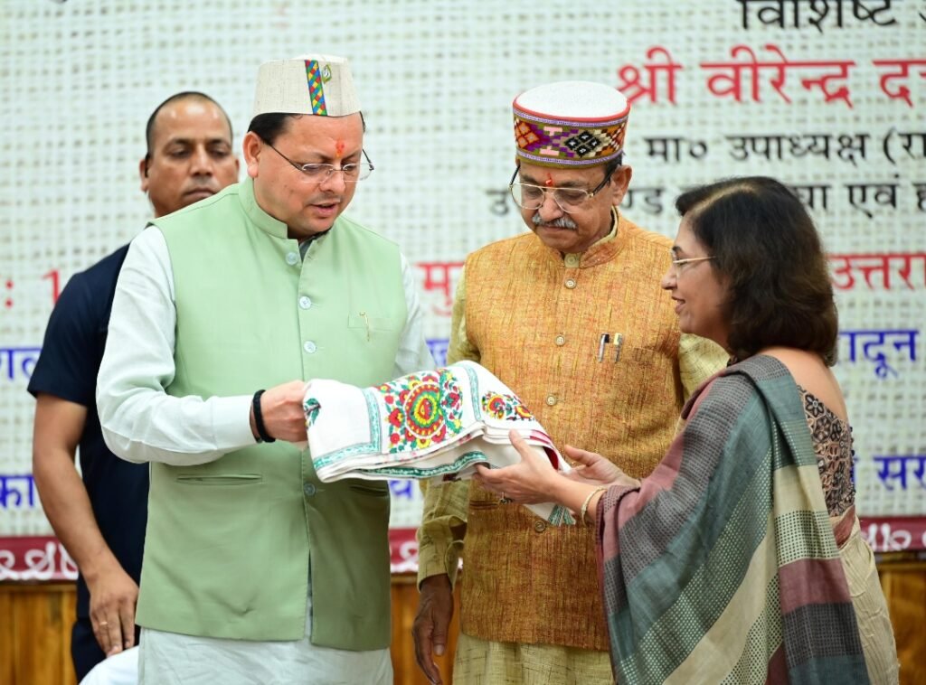 मुख्यमंत्री ने कहा कि हर्षिल की ऊनी शाल, मुनस्यारी-धारचूला की थुलमा, अल्मोड़ा की ट्वीड, छिनका की पंखी और पिछौड़े के डिज़ाइन ने उत्तराखंड को न केवल राष्ट्रीय स्तर पर, बल्कि वैश्विक बाजार में भी पहचान दिलाई है। उन्होंने बताया कि आज भांग एवं बांस के रेशों से बने वस्त्रों की देशभर में विशेष मांग देखी जा रही है।