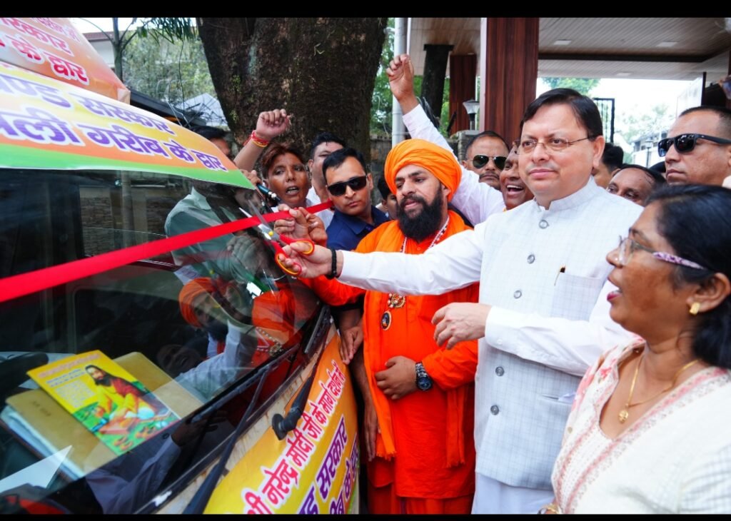 मुख्यमंत्री श्री पुष्कर सिंह धामी ने सोमवार को मुख्यमंत्री कैंप कार्यालय से डॉ० भीमराव अम्बेडकर समाज कल्याण बहुउद्देशीय शिविर रथ को हरी झंडी दिखाकर रवाना किया।