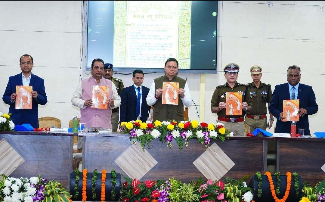 मुख्यमंत्री श्री पुष्कर सिंह धामी ने संविधान दिवस के अवसर पर बुधवार को पुलिस लाइन देहरादून में आयोजित कार्यक्रम में भारत के संविधान की उद्देशिका की शपथ दिलाई