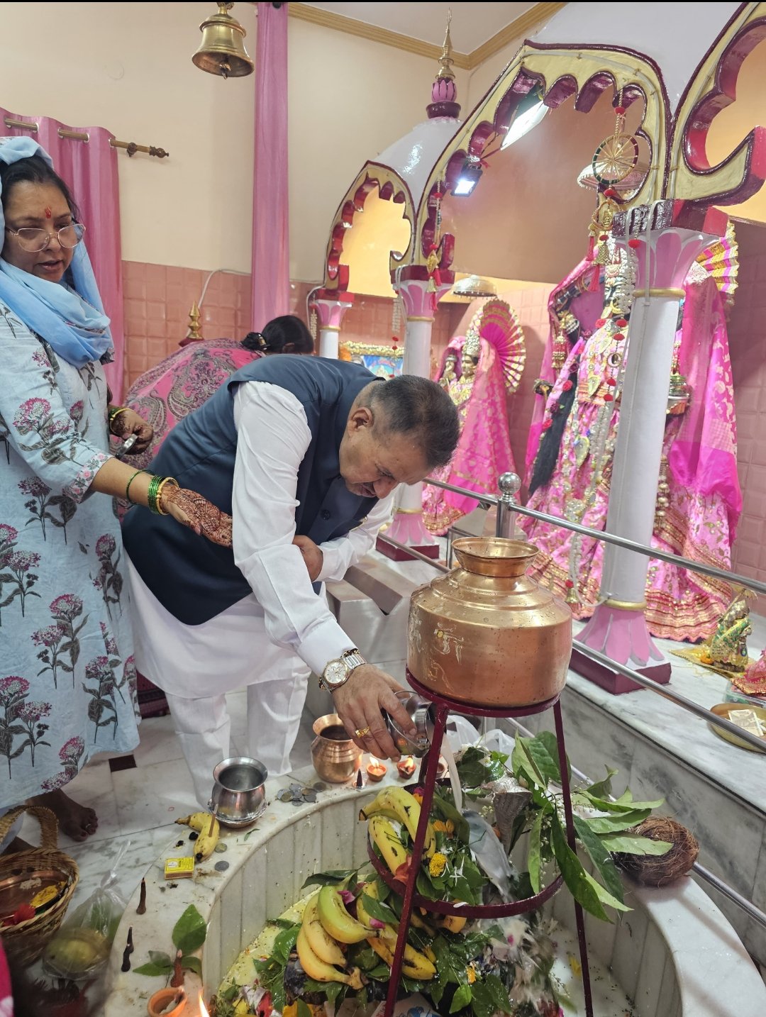 कैबिनेट मंत्री गणेश जोशी ने श्रावण मास के सोमवार के पावन अवसर पर न्यू कैंट रोड स्थित माता मंदिर में धर्मपत्नी निर्मला जोशी के साथ भगवान शिव का जलाभिषेक किया। इस दौरान उन्होंने पूजा-अर्चना कर प्रदेशवासियों के सुख, शांति और समृद्धि की कामना की।