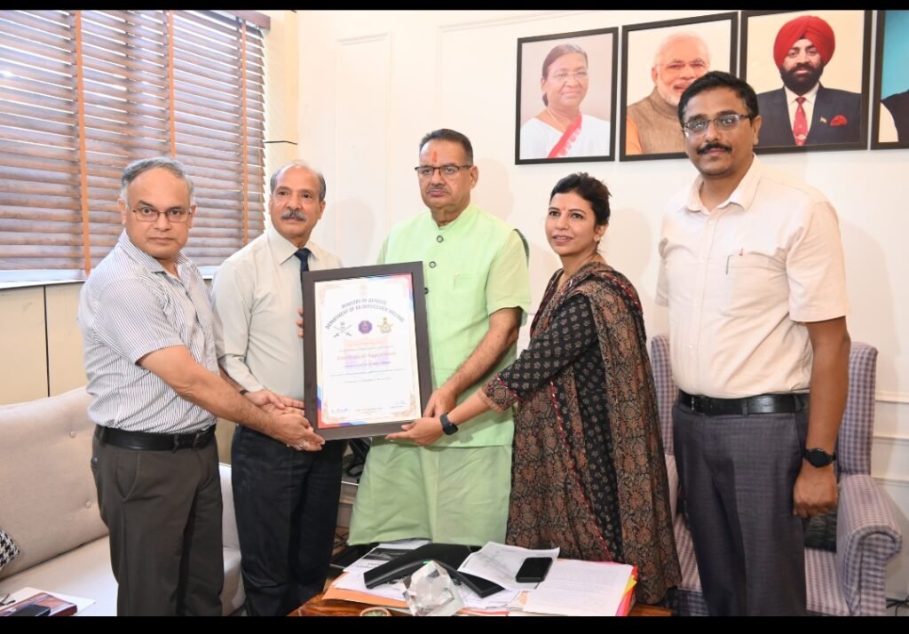 बैठक के दौरान विभागीय अधिकारियों ने सैनिक कल्याण मंत्री गणेश जोशी को हाल ही में केंद्रीय रक्षा मंत्री राजनाथ सिंह द्वारा नेशनल कॉन्क्लेव 2025 में उत्तराखण्ड सैनिक कल्याण विभाग को मिले राष्ट्रीय स्तर का पुरस्कार भी भेंट किया। यह सम्मान विभाग द्वारा पूर्व सैनिकों के कल्याण, पुनर्वास तथा सैनिक-केंद्रित योजनाओं के प्रभावी क्रियान्वयन के लिए दिया गया है। इस उपलब्धि पर मंत्री जोशी ने विभाग के अधिकारियों को बधाई और शुभकामनाएं दीं।