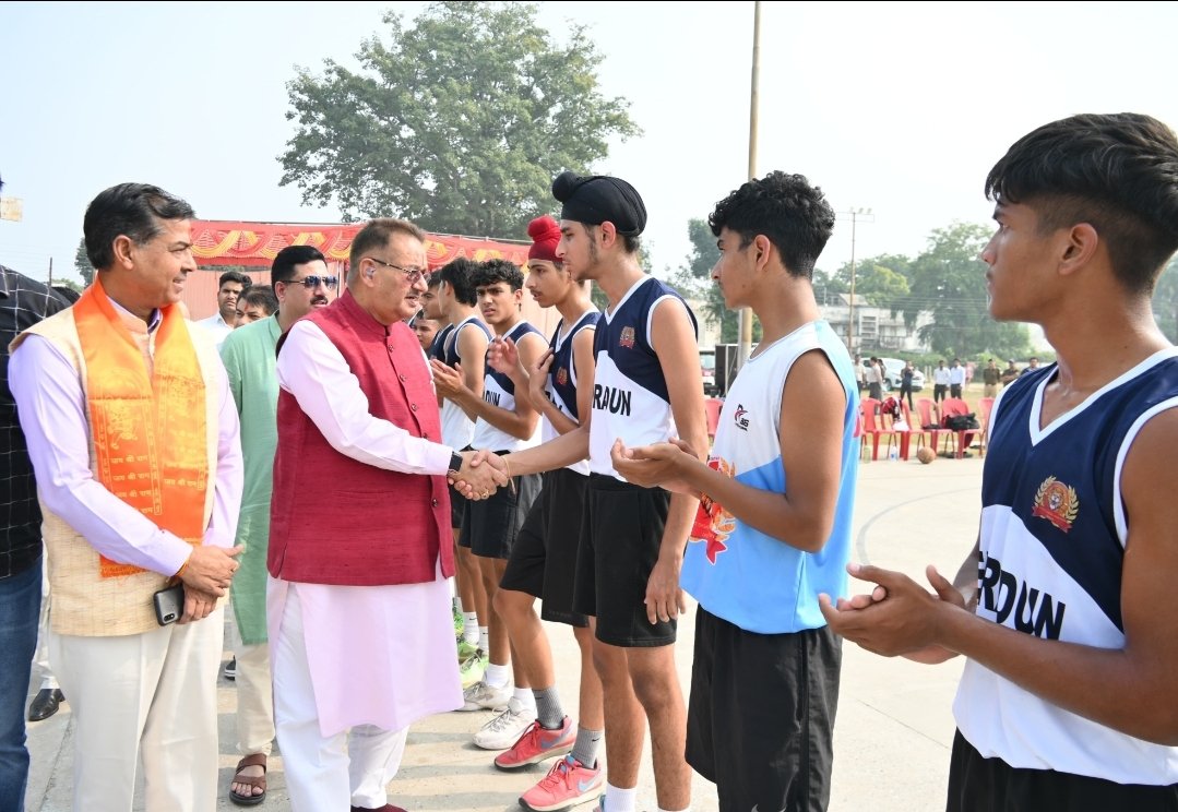 हरिद्वार में आयोजित 21वीं यूथ स्टेट अंडर-16 बास्केट बॉल बालक बालिका प्रतियोगिता के समापन कार्यक्रम में प्रतिभाग करते कैबिनेट मंत्री गणेश जोशी।
